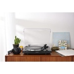 Balanced straight tonearm with hydraulically damped lift control and rest