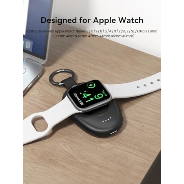 【Portable Charger for Apple Watch】This magnetic wireless charger for Apple Watch equipped with a powerful 1400mAh battery that can provide up to 2-3 full charges for iWatch 1-9/SE and one charge for Ultra/Ultra 2. This portable charger for Apple Watch also features four LED indicators that make it easy to check the battery level at a glance (0–25%–50%–75%–100%).