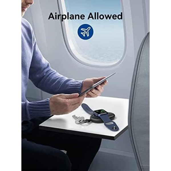 【Magnetic Induction Charging】 This portable charger for Apple Watch is equipped with a powerful magnetic adsorption module that ensures it stays firmly attached to the center of the charger, preventing any accidental sliding off. All you need to do is dock your watch onto the magnet and charging will commence immediately upon contact.