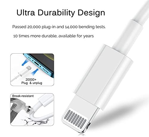 【Ultra Durablity】 apple chargers iPhone cable design with sturdy unibody connectors and additional 3 protection layer to resist damage. Experimental results shows that this strengthen design can withstand the most rigorous test with 20,000 bending and insertion. You can use it for years.
