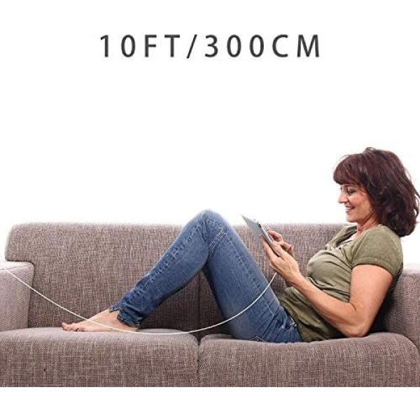 Perfect 10FT: With the 10ft length, you can lie on the couch or sofa and use your devices while you are charging at the same time. And you can use freely in your bedroom, office and even in the backseat of your car.