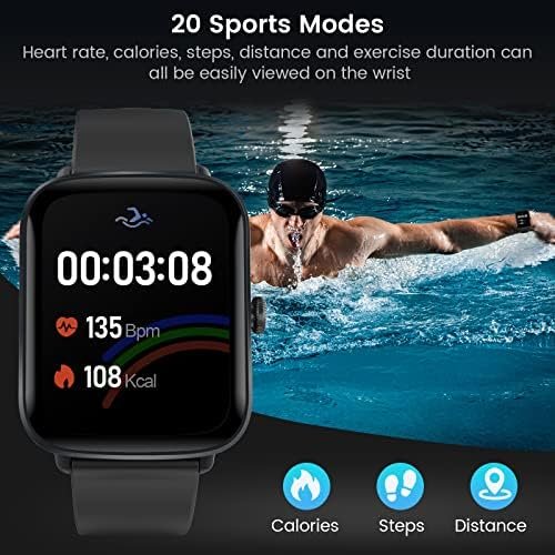 【Your Smart Assistant】- This android smart watch includes more useful features, fitness tracker, pedometer, heart rate monitor, sleep monitor, 20 exercise modes, blood oxygen monitor, call notifications, SMS, and APP messages (note: you cannot reply to messages through the watch), music and camera controls, weather display, sedentary and water reminders, stopwatch, timer, calculator, alarm clock, etc. Meet your daily needs